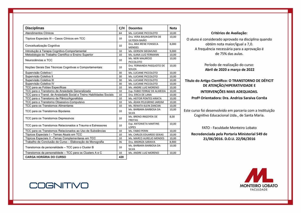 - IWP cognitivo. Especialização em Terapia Cognitivo Comportamental